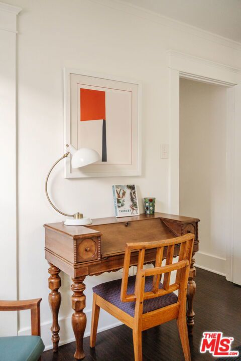 Tucked behind a redwood fence and enveloped by mature bamboo, this enchanting 1921 Craftsman reveals a serene private oasis in the heart of rapidly evolving East Hollywood. Ideally positioned near Hollywood, Silver Lake, and Los Feliz, this two-bedroom, one-bath residence beautifully blends timeless character with thoughtful modern upgrades. A welcoming front porch introduces interiors filled with warmth and light. The spacious living room flows effortlessly into a formal dining room, creating an ideal setting for both relaxed daily living and effortless entertaining. Period charm is complemented by hardwood and tile floors throughout, while solar panels offer meaningful energy efficiency. The stylishly updated kitchen features quartz countertops, generous cabinetry, and stainless steel appliances. Both bedrooms are generously sized with ample closet space and connect via a long central hallway with dual linen closets, along with a refreshed bathroom finished in a clean, modern style. Just beyond the kitchen, the backyard becomes a true extension of the home - an inviting outdoor living and dining retreat perfect for al fresco evenings and weekend gatherings. The detached rear garage includes a washer and dryer and provides valuable additional storage or off-street parking for one car. An exceptional condo alternative, this special property places you in one of the city's most dynamic neighborhoods, moments from beloved dining, nightlife, the Metro and iconic destinations including Hollywood Boulevard, the Griffith Observatory, Barnsdall Park and Sunset Junction.