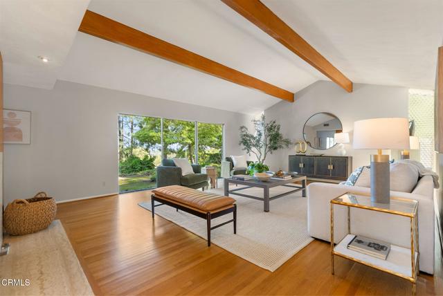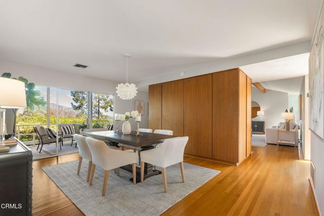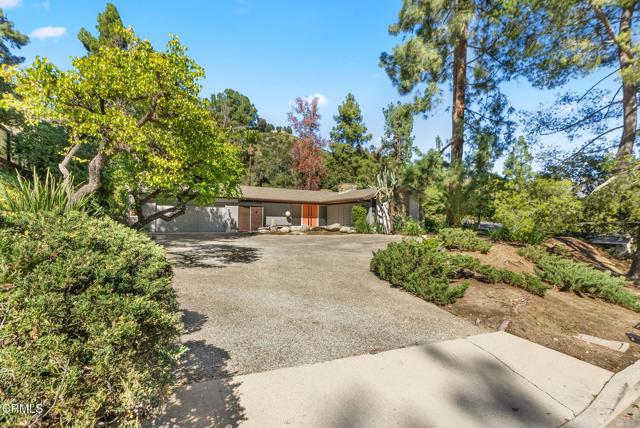 Welcome to the Pegfair Estates Historic District where architectural significance, exceptional privacy, and natural beauty abound. Set near the end of a quiet cul-de-sac in Pasadena's coveted Linda Vista neighborhood,1625 Pegfair Estates Drive is a celebration of timeless, Mid-Century Modern design. This 1965-built contemporary ranch is beautifully preserved and primed for its next glory era. A wood shiplap exterior and double-door entry lead to gorgeous, light-filled interiors enhanced by subtle, Asian-inspired design elements. Sumptuous natural materials meet clean-lined living spaces framed by walls of glass that bring the beauty of the outdoors inside. Thoughtfully and artistically designed, the home encourages connection with both the picturesque natural surroundings and with loved ones. A showcase living room is anchored by a sleek fireplace, soaring ceilings with exposed beams, and sliding glass doors offering mountain views. Inspiring views extend through the formal dining room and kitchen, where a smart layout allows you to enjoy the picturesque scenery while cooking and entertaining. The family room, wrapped in windows and glass doors, offers an inviting setting for movie nights and holiday traditions as the fireplace crackles. When it's time to recharge, the primary suite features abundant closet space and a generous ensuite bath. Two additional bedrooms share a hall bath. Outdoor spaces include a large courtyard patio, perfect for parties that flow effortlessly from indoors to out. Further beyond, the backyard feels like a private nature reserve with an expansive lawn, mature trees, spectacular diversity of plants, and lush green surroundings. A rare and special opportunity, this Mid-Century treasure is destined for dream-house status. All that's needed is your creative vision of perfection.