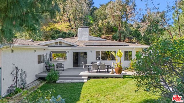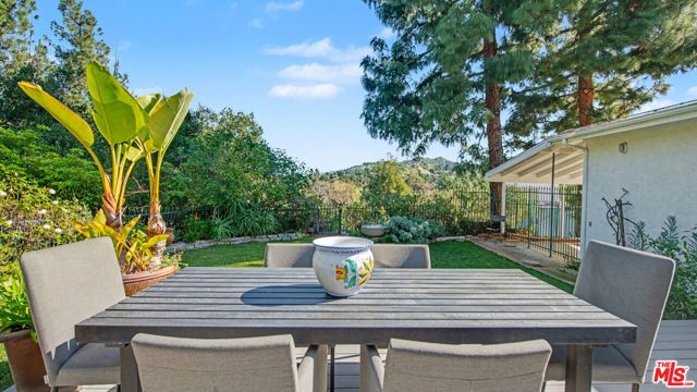 Located in the highly coveted Fryman Canyon, for those that value privacy and seclusion, this 1 level home is at the end of the street and up a long driveway situated on a knoll elevated far above the street. Designed for indoor-outdoor living, the layout flows effortlessly from inside to out-perfect for entertaining, dining under the stars or simply letting fresh air and natural light fill your day. It's secluded, but not remote-close enough to feel connected yet private enough to feel like your own retreat. The real showstopper? Wide, cinematic views over Fryman Canyon. Whether you are hosting friends for sunset drinks or enjoying a quiet morning coffee, the backdrop is pure California. Large formal skylit entry and hardwood flooring throughout most of the home, spacious entertaining living room with soaring ceilings, lots of skylights and a fireplace with an open concept to the dining room and a large chef's kitchen with newer stainless-steel appliances all with views to the backyard and canyon. There is also a sky-lit separate family room/media room, a beautiful private primary suite with walk-in closet and luxurious bathroom looking out to the gardens. Other features include a new eco-friendly composite deck leading to the beautifully private flat grassy yard with room for pool and separate tranquil outside entertaining areas with peaceful fountains and gardens. There is also a separate laundry room, a 2-car garage with direct access into the home and an additional carport. This home gives you that "I'm away from it all" feeling-without ever being far from what you love. Only a short distance to the Fryman Canyon hiking trails and just 1 mile to Ventura Blvd. with a multitude of cafe's, restaurants & shopping and the highly rated Carpenter Elementary. A very special offering.