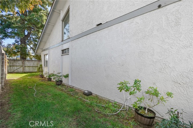 Upstairs, a versatile loft provides additional flexible space ideal for a home office, media area, or reading nook. The primary suite includes laminate flooring and a walk-in closet with generous storage. The primary bathroom features granite countertops, a single vanity, and a tiled walk-in shower with stone tile flooring. One additional bedroom offers natural light and versatility, while the loft provides opportunity for an additional lounging area or storage. Outside, the fully fenced backyard includes a grassy area, providing a private and manageable outdoor space to relax or entertain.