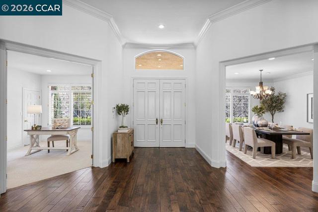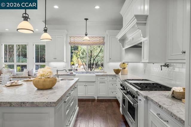 Nestled in the highly desirable Northridge Estates, this stunning single-story custom home combines timeless elegance with modern comfort. From the moment you arrive, the charming front porch & grand double entry doors welcome you into a spacious foyer, where your gaze is drawn through the living room to the serene backyard. This thoughtfully designed home boasts an ideal floor plan with abundant natural light, soaring ceilings & hardwood floors. The formal living & dining rooms provide the perfect spaces for entertaining, while the remodeled kitchen is a chef’s dream featuring pristine white cabinetry, honed granite countertops, top-of-the-line appliances including a Wolf 6-burner stove, griddle & double ovens, farm sink, center island, and built -in desk. The kitchen seamlessly flows into the expansive family room with fireplace and slider to the yard. The home offers three generously sized secondary bedrooms, an updated Jack-and-Jill bathroom, & a luxurious primary suite complete with two walk-in closets and a spa-like ensuite bath. Outside, the peaceful & private backyard is a true retreat, ideal for relaxation with its lush landscaping, multiple patios, sparkling pool, spa & BBQ. Located near scenic walking trails, shopping, dining, & in the highly rated SRV School District