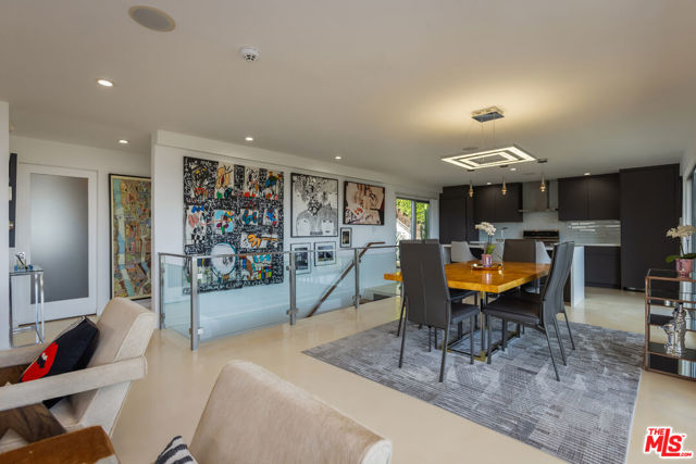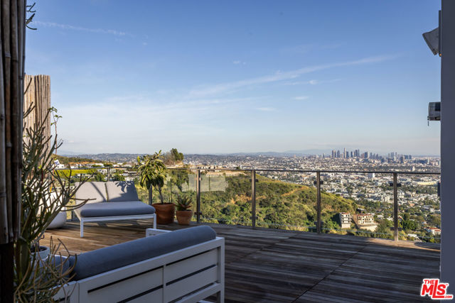 Perched high above the city lights of Los Angeles, this striking hilltop modern residence captures sweeping, unobstructed DTLA skyline views and defines elevated indoor-outdoor living.Designed with clean architectural lines and walls of glass, the open-concept floor plan is flooded with natural light and framed by breathtaking views from nearly every room. Multiple deck and balcony spaces extend the living areas outdoors, offering a variety of settings for entertaining, dining, or simply relaxing while taking in panoramic city views. The chef's kitchen is appointed with premium Bosch appliances and a sleek Silestone waterfall island, flowing seamlessly to a private courtyard ideal for al fresco dining. Nano sliding doors create a true indoor-outdoor experience, while a dramatic floating staircase adds architectural sophistication.Two spacious bedroom suites are privately positioned on their own level for comfort and separation. The third bedroom has been thoughtfully converted into an oversized custom walk-in closet, with flexibility to return it to a bedroom if desired.A one-car garage includes a valuable bonus office or creative studio space. Gated from the street for enhanced privacy, this contemporary retreat offers multiple outdoor living spaces, refined modern design, and iconic skyline viewsall in one exceptional hilltop setting.