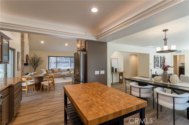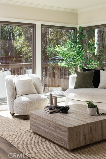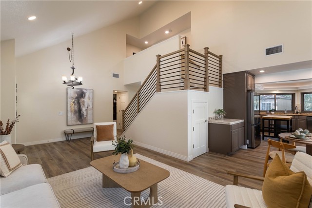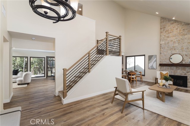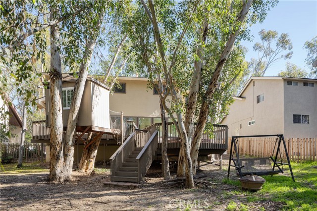 Set beneath a canopy of soaring eucalyptus trees, this beautifully renovated home offers tranquility the moment you arrive. Located in The Woods, one of South Orange County’s most distinctive enclaves, shaded streets and oversized lots create a setting that feels transportive, yet you remain just moments from it all. Completed with a long-term lens, the 2025 renovation blends elevated turnkey design with meaningful infrastructure improvements, while preserving the warmth and architectural character that make The Woods so visually distinct. Enter to airy vaulted ceilings and a smooth, open flow throughout the main living spaces. The redesigned gas fireplace serves as a striking focal point, featuring new finishes and remote control functionality for tailored warmth and ambiance. The living room connects to the dining nook and functionally designed kitchen with all new appliances, while an additional dining area and adjoining family room offer flexibility. A full wall of windows brings in natural light through the surrounding trees, creating a true indoor-outdoor feel. Extra-thick luxury vinyl plank flooring, fresh paint, recessed lighting, updated fixtures, fully renovated bathrooms, and all new custom solid core doors elevate the interiors. Newly insulated walls and ceilings, along with energy-efficient, noise-reducing windows and sliding glass doors, enhance comfort and quiet throughout. Upstairs, the remodeled primary suite offers serene treetop views from a private balcony, joined by three additional bedrooms and an updated secondary bath. Outside, an expansive deck with spa and treehouse creates a relaxed retreat. An oversized interior laundry room with storage and direct garage access adds everyday functionality. Behind the design, infrastructure improvements include replaced and expanded electrical with an upgraded panel ready for solar and EV charging, a full PEX repipe, foundation reinforcements, and refreshed landscaping, gutters, and downspouts. Shopping, dining, entertainment, schools, amenities, and everyday conveniences are at your fingertips, including Irvine Spectrum, Great Park, and Lake Forest Sports Park. HOA membership includes access to the Lake Forest Beach & Tennis Club with heated pools, beach lagoon, pickleball, basketball, and event space. A rare opportunity to own a truly turnkey home where timeless character meets renovation depth…this is an opportunity not to be missed.