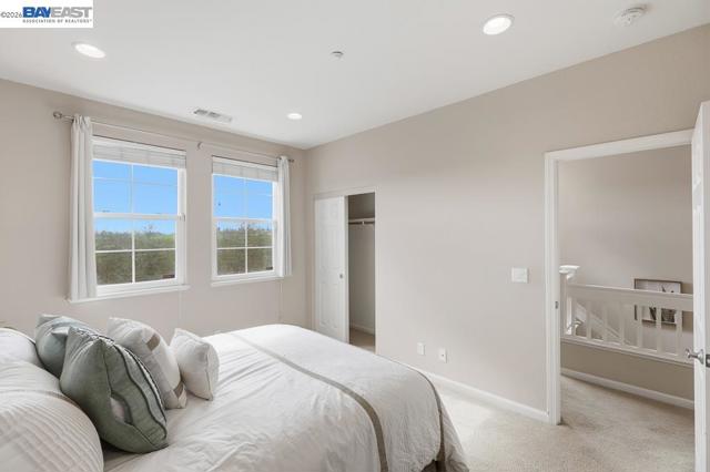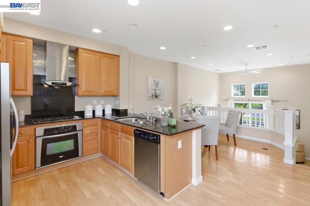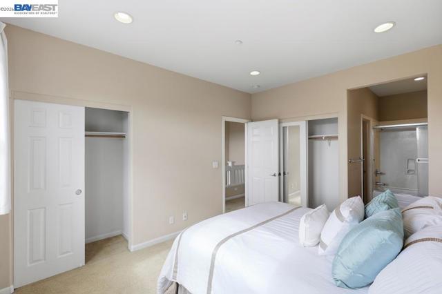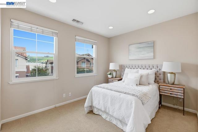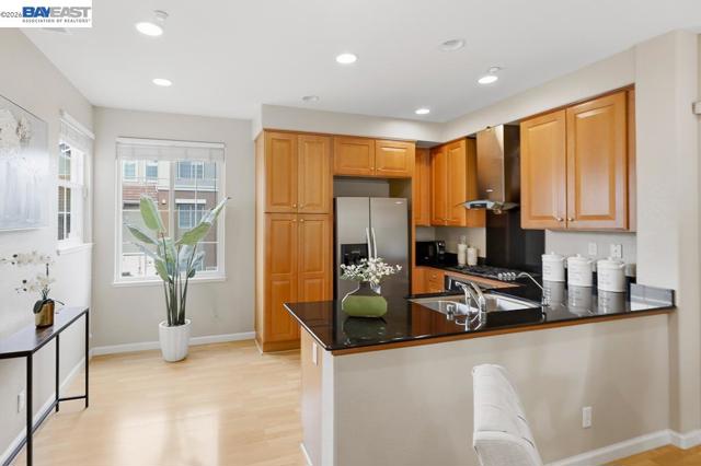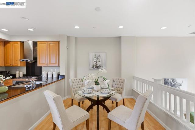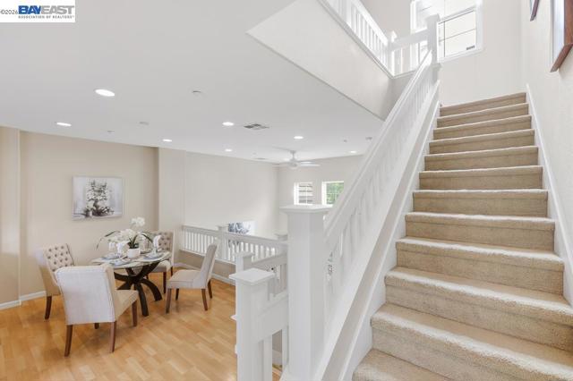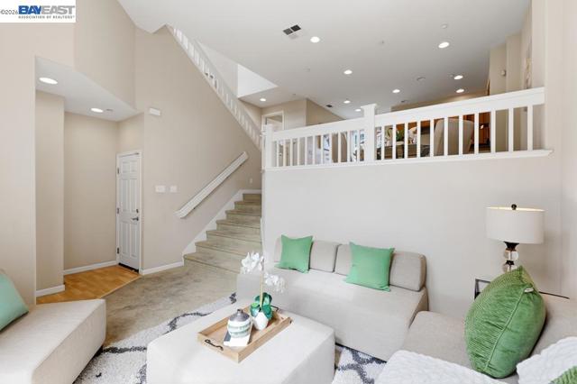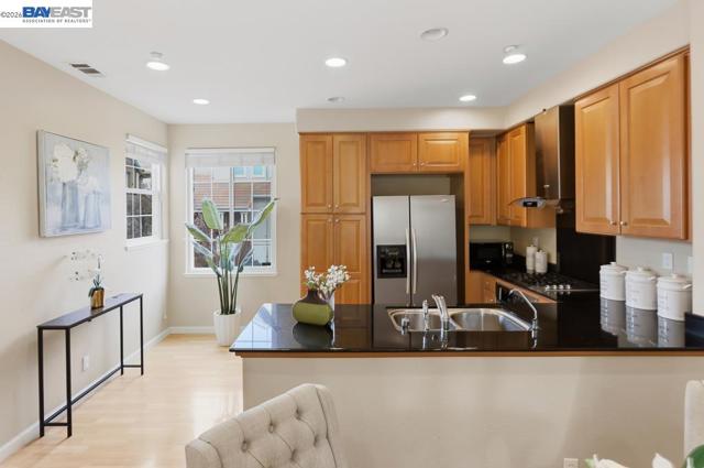 Welcome to this beautiful and well maintained Pacific Terrace townhome. This spacious 2 bedroom, 2.5 bath residence offers an ideal blend of comfort, style and convenience. Main level opens to living room with high ceiling and ceiling fan. Modern kitchen with stone counters, recessed lighting, stainless steel appliances and ample cabinet space. Upstairs enjoy two generously sized ensuite bedrooms and spacious closets. Laundry closet with washer and dryer included upstairs. Upgraded whole house water softener. Attached two car garage. This home is positioned to overlook greenbelt landscaping and natural views. Well established HOA managed community with community pool, clubhouse, landscaped common areas and walking trails. Close to BART, shopping, parks, and Hwy 92/880 access. Move in ready with low HOA dues.