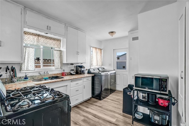 This charming home, conveniently located in the heart of Santa Ana, features three bedrooms and two bathrooms. Recent updates include fresh interior and exterior paint, new durable vinyl flooring in the living room, kitchen, hallway, and bedroom, a remodeled master bathroom with an updated vanity and sink, and newer windows throughout. The kitchen is appointed with granite countertops and ample cabinetry for storage. The inviting living room showcases a cozy fireplace and abundant natural light, creating a bright and comfortable space to relax or entertain. The spacious backyard offers plenty of potential for outdoor gatherings, gardening, or future improvements. A detached two-car garage and extended driveway provide ample parking.