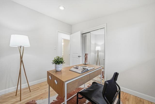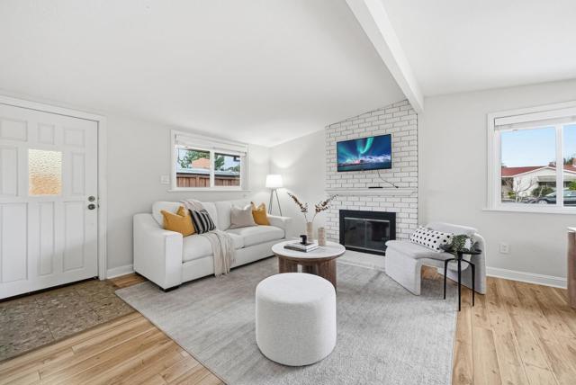 This single story Santa Clara home blends a warm, wood accented exterior with a freshly painted, modern interior filled with natural light. An open concept layout, two skylights, and recessed lighting create a bright, airy atmosphere throughout the living spaces. A permitted 378 sq ft bonus room expands the home to approximately 1,500 sq ft, offering flexible space for a family room, office, gym, or studio. Double pane windows paired with excellent insulation provide a comfortable, energy efficient environment further enhanced by low Santa Clara utility rates. Recent upgrades include new interior paint, stainless steel appliances, a new oven, new washer and dryer, new wall heater, new laminate flooring in the family room, and remodeled bathrooms. Generous storage throughout the home adds everyday convenience. The property features multiple mature fruit trees including apricot, fig, peach, apple, grape, and more providing fresh homegrown fruit and seasonal color right at your doorstep. Minutes from major Silicon Valley employers, parks, shopping, and commuter routes, this home offers modern comfort, openconcept living, energy efficiency, and versatile space in a highly convenient location.