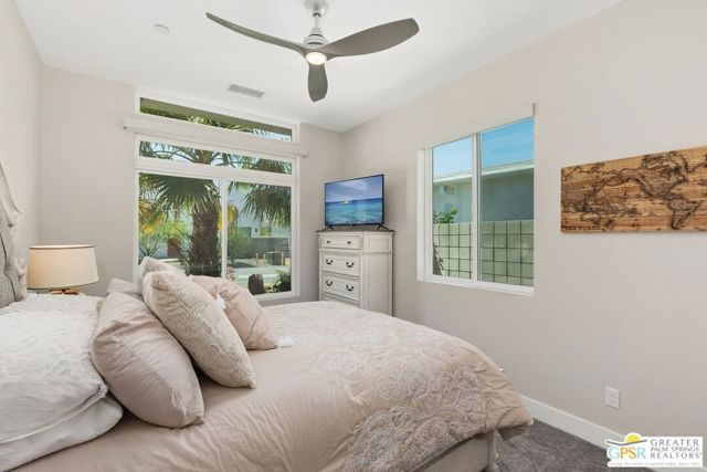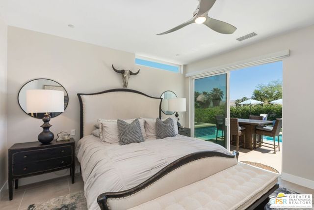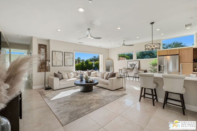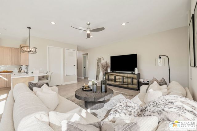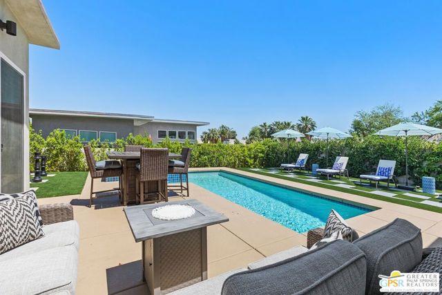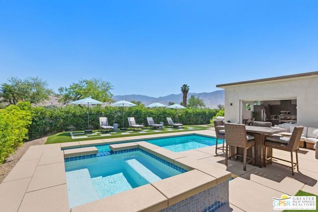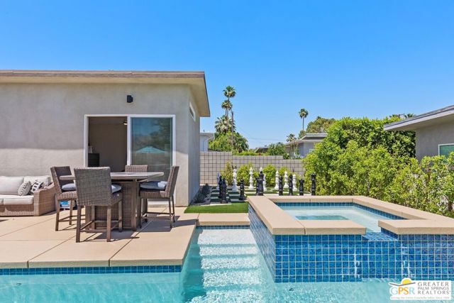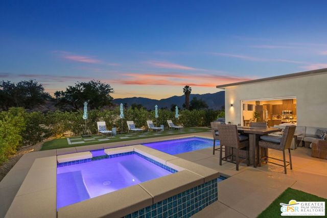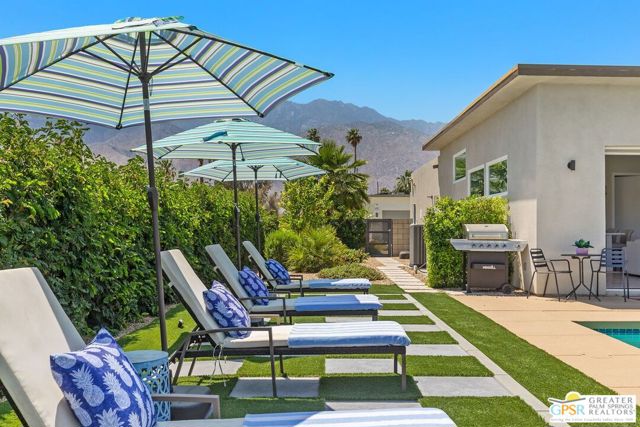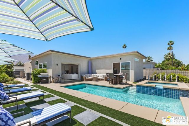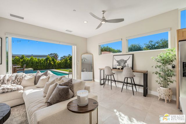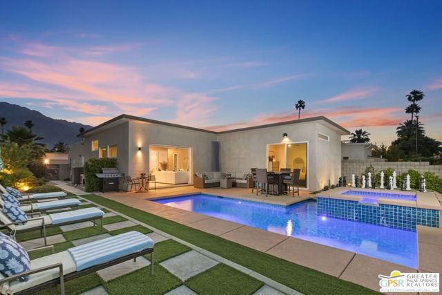 Experience elevated desert living at 760 S Palm Ave, a fully furnished, turnkey retreat designed for effortless luxury and unforgettable entertaining. Framed by breathtaking 180-degree views of the San Jacinto Mountains, this modern residence blends indoor-outdoor living with the relaxed sophistication for which Palm Springs is known. A disappearing retractable glass wall opens the expansive living space to a private resort-style backyard, where drought-conscious landscaping, lush artificial turf, a life-size chessboard, and a color-changing LED pool and spa create a striking yet low-maintenance oasis. Whether hosting sunset gatherings or enjoying a quiet evening under the desert sky, every detail has been curated for both comfort and style. Inside, the open-concept layout is anchored by a sleek chef's kitchen featuring quartz countertops, premium stainless-steel appliances, and clean contemporary finishes. Offered fully furnished, this home is truly move-in ready, ideal as a personal escape, seasonal residence, or income-producing investment. Perfectly positioned just minutes from downtown Palm Springs, adjacent to the city's largest public park and Tahquitz Creek Golf Resort, the location delivers both convenience and recreation. Situated on Fee Land and in one of the few areas that permit short-term rentals, this property offers exceptional flexibility and long-term value.