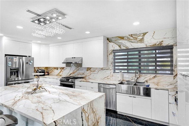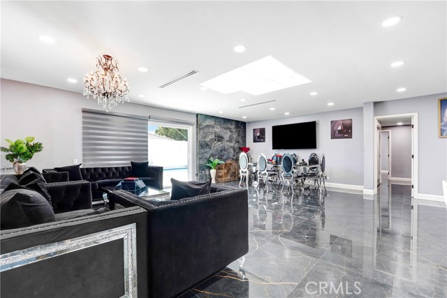 A rare opportunity in a prime Chatsworth location, this stunning, fully reimagined residence perfectly blends modern design with everyday functionality. With hundreds of thousands invested in high-quality renovations, the home has been thoughtfully transformed from top to bottom. Offering 6 bedrooms and 3 full bathrooms, the spacious layout is enhanced by soaring 9’ ceilings and a bright, open feel throughout. From the moment you enter through the double doors, the attention to detail is evident, including brand-new copper plumbing, updated electrical, new drywall, fresh insulation, recessed lighting and refined finishes throughout. The beautifully redesigned kitchen features abundant cabinetry and a massive center island, truly a dream for any home chef. The bathrooms showcase high-end materials, including elegant porcelain tile that blends style with durability. A designer living room anchored by a sleek fireplace creates the perfect setting for both entertaining and relaxed evenings at home. Two bedrooms and a full bath are privately situated on one wing of the home, offering flexible living arrangements. In addition, two bonus rooms with closets bring the total to eight possible bedrooms, ideal for extended family, guests, workspace, or potential income opportunities. Step outside to your private backyard retreat featuring a sparkling pool and pergola-covered lounge area, perfect for hosting gatherings or enjoying Southern California living. Positioned on a desirable corner lot, the property also offers subtle mountain views that enhance its peaceful setting. Conveniently located near parks, shopping, dining, commuter routes, and well-regarded public schools, this move-in-ready home combines comfort, versatility, and quality craftsmanship in one exceptional offering.