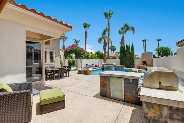 The perfect La Quinta getaway, updated and ready for enjoyment! You will be immediately struck by the newly renovated kitchen space as you walk in the door, along with the ultra-functional layout that provides 3 spacious bedrooms and 3 full bathrooms, two of which are en suite! The pool area has been repainted and restored to boast ample space for family and friends to enjoy, including a built-in BBQ area and retractable awnings. The back patio provides another open space, great for young children or pets to roam about safely, with newly installed artificial grass. All new pool equipment installed in 2024, fully operational remotely from your phone! The community includes a pedestrian gate out of the community for quick access to Old Town La Quinta or The Citrus Club golf course. Don't miss out on this ready-to-go gem! Low HOA fees include a guard gate, exterior tree and yard maintenance, WIFI, Cable TV and trash collection.