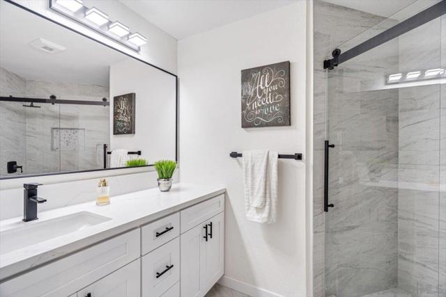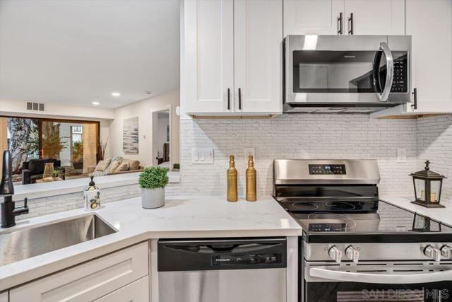 Welcome to 9745 Mesa Springs #142 in the heart of Mira Mesa! This beautifully upgraded home has been thoughtfully renovated from top to bottom, offering modern style and move in ready convenience. this home offers a seamless flow with access to an outdoor patio from both bedrooms and the living room. Enjoy the convenience of a tandem 2-car garage. Step inside to discover brand new laminate flooring throughout, fresh interior paint, and new ceiling light fixtures that create a bright and inviting atmosphere. The fully remodeled kitchen features new cabinetry, sleek stainless steel appliances, and a new garbage disposal, perfect for everyday living and entertaining. Both bathrooms have been completely updated with contemporary finishes, while new interior doors add a clean, cohesive look throughout the home. Major system upgrades provide peace of mind, including a new heater furnace, new power outlets, and a new breaker box. With quality improvements throughout and located in a desirable San Diego community close to shopping, dining, and freeway access, this home is truly turnkey and ready for its next owner to enjoy.