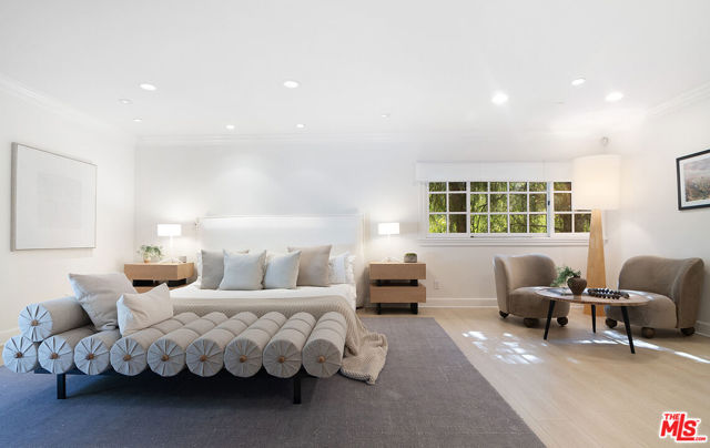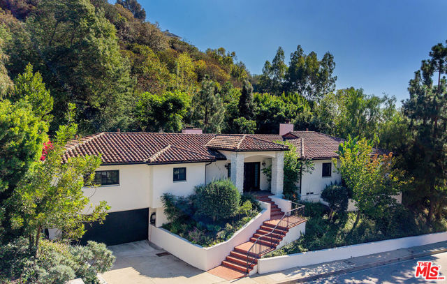 Set above the street in a fabulous part of lower Bel Air sits this desirable single-level home at 1132 Chantilly Road. Formal double-door entry welcomes you to an open, grand room with a beautiful centerpiece fireplace, setting the tone for over 2,500sft of living space. Extending off the great room is a grand kitchen with high-end Wolf and Sub Zero appliances and showcasing a giant island perfect for preparing or congregating. The generous primary bedroom complete with fireplace doesn't disappoint in size or comfort, offering separate sitting or office space and provides direct access to the grassy backyard. Oversized primary bathroom with large soaking tub and a large walk-in closet round out the primary experience. Outdoors, enjoy a large backyard along with extensive patio space perfect for enjoying the privacy created within this more than 1/2 acre lot. The location cannot be beat, set near some of the finest estates in LA, and providing easy access to the Westside, BH and everywhere you'd like to be.