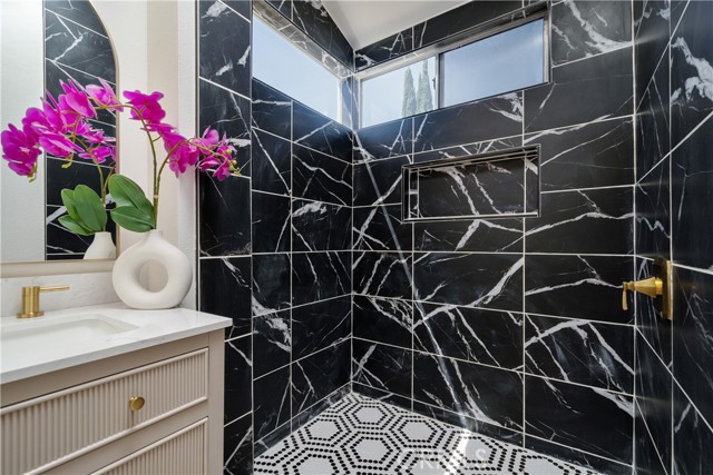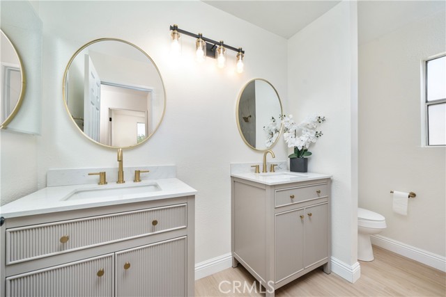 Upstairs, the home offers four generously sized bedrooms and two fully remodeled bathrooms with contemporary finishes and fixtures.