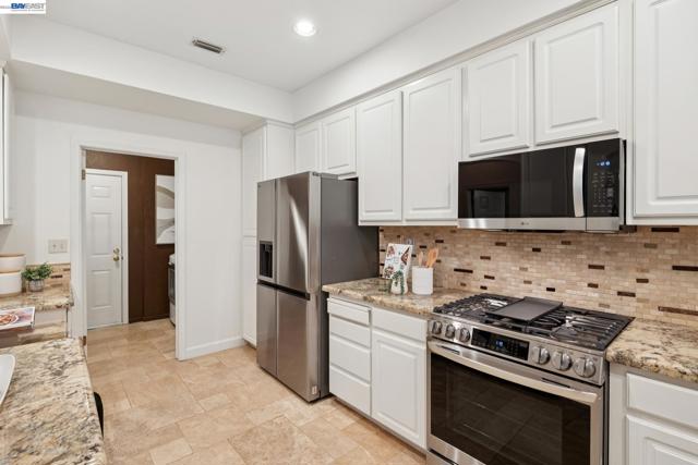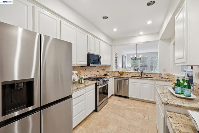Meticulously maintained 2 bed, 2.5 bath townhome-style condo in the highly desirable Wildwood at Five Canyons community. This home features travertine flooring, laminate floors in bedrooms and on stairs, and a recently updated kitchen with granite countertops and newer stainless steel appliances. The spacious primary suite offers custom built-in closets and cabinets, along with an updated primary bathroom featuring dual sinks and a newer walk-in shower. The second bedroom includes custom built-ins by California Closets. Additional highlights include plantation shutters, built-in cabinetry in the living room, a newer A/C and heating system, a recently painted interior, and an upgraded garage with loft storage, built-in cabinets, and finished flooring. Enjoy the private backyard with travertine hardscape and mature landscaping. Washer and dryer included. Located in the desirable Wildwood at Five Canyons community, this home offers a peaceful setting with pride of ownership throughout; an excellent opportunity to enjoy townhome living in one of Castro Valley’s most sought-after neighborhoods.