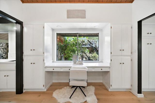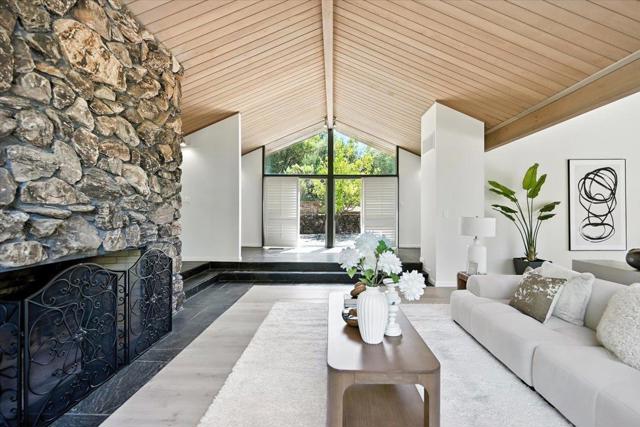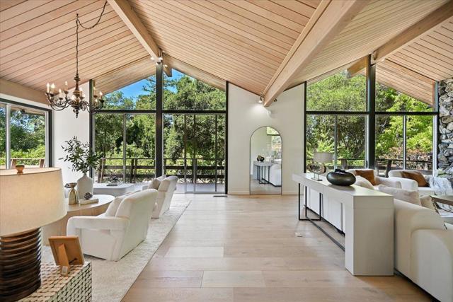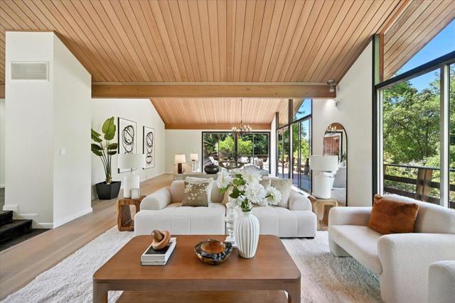 A rare opportunity to own a timeless Saratoga Mid-Century Modern estate in one of the most prestigious neighborhoods. Privately tucked behind a gated entrance on a flat 1.24-acre lot, this 5-bedroom, 3.5-bath, 5,323 sq. ft. single-level residence offers architectural pedigree, thoughtful updates and serene privacy. Originally designed by award-winning architect Warren Heid with remarkable attention to detail & symmetry, the home was envisioned as a Japanese garden inspired retreat, blending Wabi-Sabi simplicity with modern minimalism. Open floor plan showcases soaring vaulted ceilings & dramatic walls of glass, creating a seamless connection to the sun-filled landscape w/ majestic oaks & redwoods. Numerous skylights bathe the interiors in abundant natural light. Separate spacious living and family rooms, a formal dining room, and a gourmet kitchen with sleek counters & top-of-the-line appliances. The luxurious master suite features glass doors that open to the lush backyard. Recent updates include a brand-new roof, new hardwood floors, a crafted deck, .etc. Walking distance to Saratoga Elementary and charming Downtown Saratoga. Just minutes to Villa Montalvo and the Mountain Winery. Highly acclaimed Saratoga School District! This property is truly an extraordinary offering!
