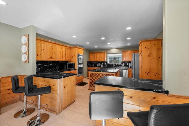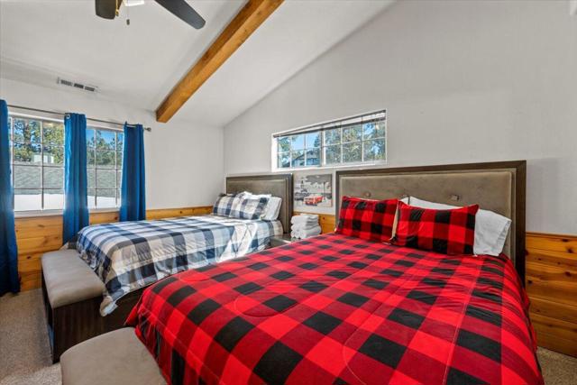 Spacious 3-bedroom mountain retreat in the heart of Big Bear City! Options like full-time living, a second home, or vacation rental potential, this property offers a peaceful setting with easy access to local amenities and outdoor recreation. Step inside to an inviting open-concept living area featuring a cozy wood-burning fireplace--perfect for snowy mountain evenings. The updated kitchen showcases modern finishes and flows seamlessly into the main living space, creating an ideal layout for entertaining or hosting family and friends. Enjoy mountain air and serene surroundings from the expansive outdoor deck, offering ample space for gatherings, barbecues, or relaxing under the pines. Additional highlights include a spacious garage for parking and storage, generous bedroom sizes, and a stylish, move-in-ready interior. Experience comfortable mountain living in a well-appointed homedesigned for both relaxation and functionality.