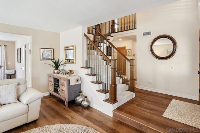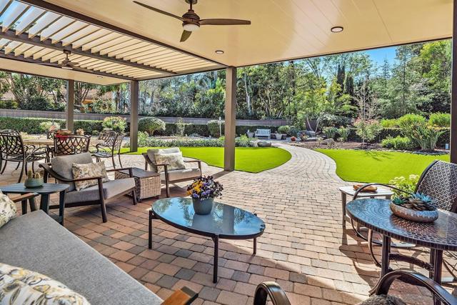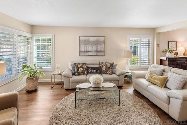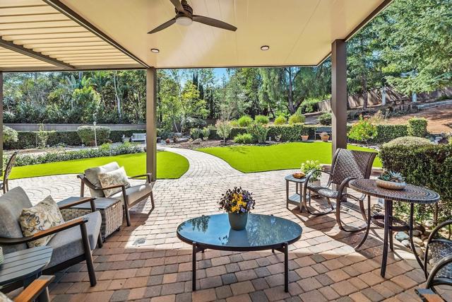 Beautifully upgraded, meticulous home on .6 acres in North Poway. Kitchen and all baths have been elegantly remodeled. Plantation shutters and dual pane vinyl windows throughout, custom entry doors w/ leaded glass, remodeled staircase and fireplace & newer roof plus 4 zone HVAC. Spacious bonus room could be 5th bedroom. Private park-like backyard w/ aluminum patio cover, pavers, walkways, turf and lush foliage. 3 car garage on a Cul-de-sac. Near PUSD elementary, middle and high schools. No HOA or Mello Roos! Pride of ownership is evident throughout this gorgeous home, lovingly upgraded and meticulously maintained by the original owners. The remodeled chef’s kitchen features custom cabinetry, Cambria quartz countertops, high end stainless steel appliances and recessed lighting. The adjacent family room is showcased by an upgraded tile fireplace and views of the beautiful, private backyard on almost 2/3 acre – perfect for entertaining or relaxing. The downstairs flooring is a beautiful luxury vinyl plank. A 40’ x 20’ extruded aluminum patio cover with solid and louvered sections, fans and lights was recently added, creating a seamless fusion between indoor and outdoor living. The luxurious master bath has been remodeled to include an expanded shower with stone tile and inlays, custom cabinetry and granite countertops, and Versailles pattern flooring. The secondary baths have also been beautifully remodeled. There is a versatile bonus room upstairs with custom built-in cabinetry that can be an office, play room or a 5th bedroom. A sunny formal living room and dining area complete this fantastic floorplan.