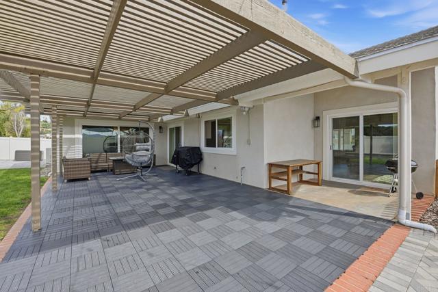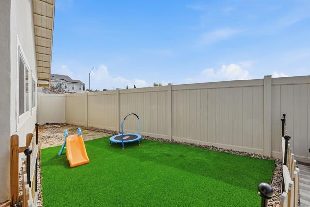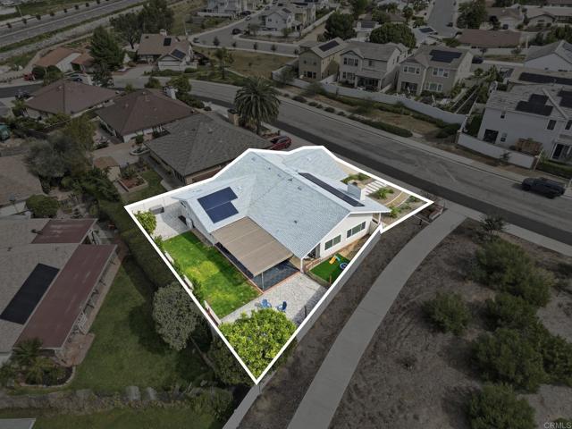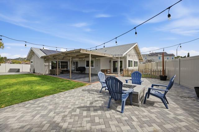 Welcome to this beautifully updated single-story home offering comfort, space, and incredible natural light. Vaulted ceilings and wide hallways create an open, airy feel throughout, while numerous windows fill the home with sunshine. The spacious living room and dining room both feature vaulted ceilings and a stunning stone fireplace with a new mantel, creating a warm and inviting gathering space. Large bedrooms provide comfort and flexibility. The backyard is designed for both relaxation and play, complete with a built-in fire pit, pavers, a grass area, and a fenced turf space perfect for kids or pets. Low-maintenance landscaping makes upkeep easy so you can simply enjoy the home. The kitchen offers abundant cabinet space and storage, and the large laundry room adds extra convenience. Extensive upgrades completed in 2022 include a new stone fireplace and mantel, all new windows and sliding doors, main water line replacement and full home replumbing with water lines rerouted through the attic, a new roof, and a new Daikin all-electric HVAC system with heat pump. The home also features vinyl flooring throughout, recessed lighting and ceiling fans, and fully remodeled bathrooms with beautiful tile finishes. Additional improvements include new wood closet doors, a new garage door, vinyl fencing to enclose the backyard, a measured screen door, and whole house restucco. A new washing machine and new refrigerator were added in 2025. Owned solar adds energy efficiency and long-term savings. With mountain views, thoughtful upgrades, and a functional layout, this home offers the perfect blend of style, comfort, and practicality.