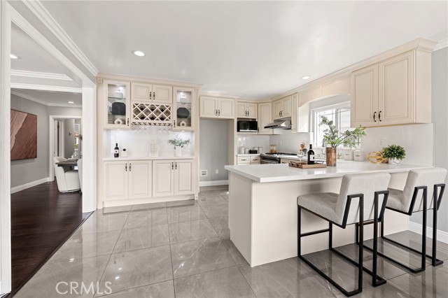 Step inside to discover a stylish contemporary interior filled with natural light and refined finishes throughout. The home features a spacious, open-concept kitchen designed for both functionality and entertaining. This wide and airy culinary space showcases a center island, sleek modern cabinetry, and elegant quartz countertops, offering ample prep space and storage. The kitchen seamlessly flows into the dining and family room, creating a warm and inviting environment perfect for gatherings.