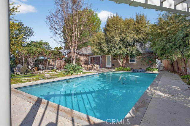 This charming property offers exceptional appeal, beginning with its quiet cul-de-sac location in the heart of Northridge. Featuring a flexible four-bedroom floor plan, the home includes a spacious yard with an oversized, newly-replastered pool that serves as a private and peaceful outdoor retreat.Inside, the residence offers four bedrooms and three baths. The first floor includes a primary suite, a secondary bedroom, and a beautifully remodeled full bath that also functions as a powder room. The recently renovated kitchen serves as the centerpiece of the home, showcasing an island, coffee station, abundant storage, upgraded appliances, stone countertops, and a large eat-in area. A bright laundry room with additional storage is conveniently located just off the kitchen. The living room features a fireplace and classic double-hung windows, as well as an additional space that could serve as a formal dining room or playroom. Upstairs, two generous bedrooms and a three-quarter bath provide excellent flexibility—ideal for teens, guests, or dedicated office space. Notable upgrades include a split ac system upstairs, newer appliances, remodeled kitchen and baths, sewer line replacement, all newer windows and doors, white oak flooring, newer HVAC, dual water heaters, updated electrical panel, new pool pump, improved attic insulation, and more. Warm, inviting, and meticulously maintained, this home is the perfect place to begin your summer.