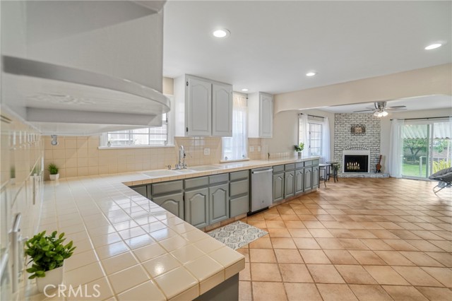 The inviting eat-in kitchen is equipped with stainless steel appliances including a refrigerator, stove, and dishwasher, along with a washer and dryer conveniently tucked into a closet. The kitchen also provides direct access to the backyard, creating an easy indoor-outdoor lifestyle.