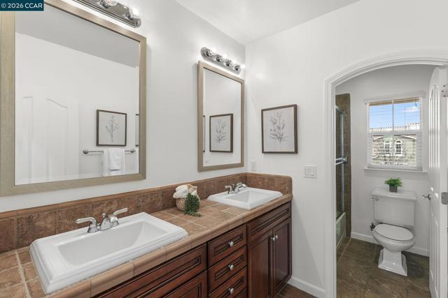 Former model home redefining luxury in the prestigious Monterosso community. Backing onto serene open space, this light and bright home offers both privacy and breathtaking views—a true sanctuary of comfort, style and sophistication. Inside, discover highly upgraded features, including a chef’s kitchen with Wolf range, Wolf double ovens, Subzero refrigerator, granite countertops and custom cabinetry. Elegant wainscoting, plantation shutters, crown molding, built-ins, and wrought iron details add classic charm throughout, while hardwood flooring upstairs and a surround sound system enhance modern living. The main level offers a guest suite with full bath, ideal for multi-generational living or hosting. Large loft/bonus room with balcony offers endless possibilities. Escape to serene views in the spacious primary suite + a retreat with a cozy flex room with fireplace, custom built-ins, and spa-like ensuite. Two additional bedrooms upstairs, one w/ a balcony, and two full bathrooms. Low-maintenance backyard invites relaxation or entertaining w/ a spacious patio, outdoor fireplace & serene open space. 2-car garage w/ EV charger. Walk to K-8 top-rated schools! Convenient to shopping, dining, and scenic trails, this home truly has it all!