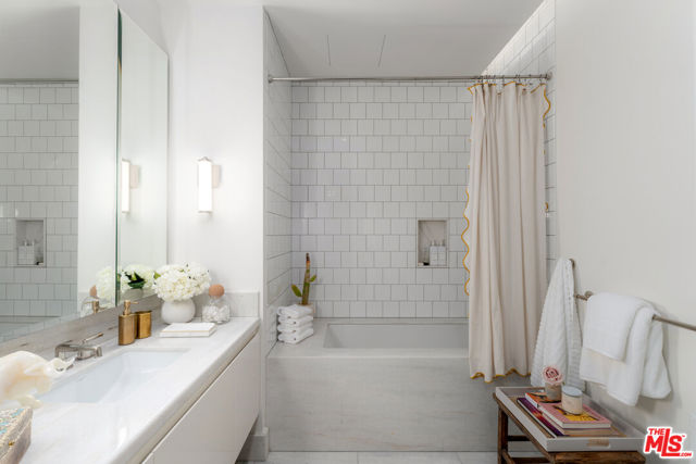 Residence 107 at The Sun Rose presents a rare opportunity along the iconic Sunset Strip, blending contemporary design with the effortless luxury of a premier full-service address. Floor-to-ceiling glass fills the interiors with natural light, highlighting wide-plank white oak floors and a seamless open layout tailored for both sophisticated entertaining and relaxed everyday living. The bespoke kitchen is outfitted with Sub-Zero and Wolf appliances, custom stained oak cabinetry, Waterworks fixtures, and a striking Calacatta Borghini marble island, while the primary suite offers a private retreat complete with a tailored Poliform dressing room and spa-inspired marble bath. A secondary en-suite bedroom, refined powder room, dedicated laundry, integrated audio, private elevator access, and two side-by-side parking spaces with EV charging enhance the residence, complemented by 24-hour concierge and security, valet, rooftop pool, fitness center, garden terrace, resident lounge, and exclusive access to The Sun Rose's signature hospitality amenities.