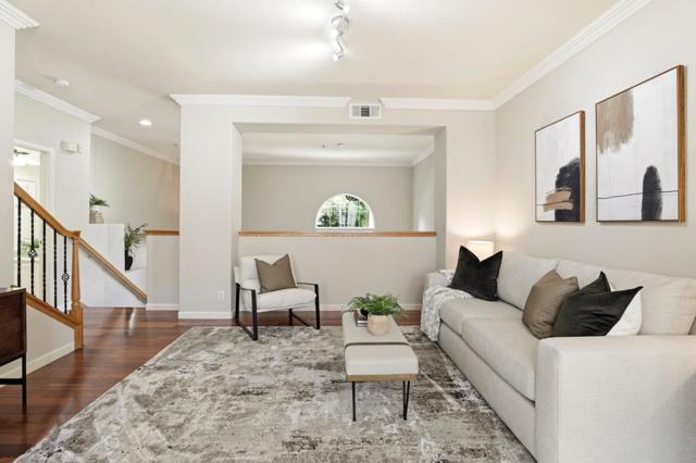 Highly desirable townhome in the gated Mission Gardens community! This move-in ready home features new carpet, hardwood flooring, and fresh interior paint throughout, offering a bright and modern feel. The formal living room showcases soaring ceilings and patio views, while the open mid-level layout connects the family room and gourmet kitchen with granite countertops, abundant cabinetry, included appliances, and a sunny dining area. Upstairs offers three bedrooms including a spacious primary suite with walk-in closet and private bath, plus a full guest bath and convenient indoor laundry with a washer and dryer. Residents enjoy use of the sparkling community pool, spa & playground. Prime Silicon Valley location near Rivermark shopping, dining, parks, Guadalupe River Trail, Levi Stadium, and major tech campuses with easy commute access.