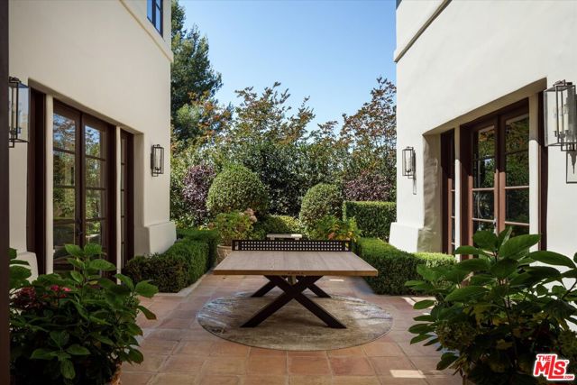 Set within the coveted guard-gated enclave of Bella Vista Estates, just steps from Beverly Park North, this Mediterranean-inspired estate offers 7,400 square feet of refined luxury on more than an acre of pristine grounds. Designed to capture sweeping canyon and mountain views from nearly every room, the residence blends timeless European craftsmanship with modern sophistication. A dramatic two-story foyer introduces elegant formal living and dining rooms, a chef's kitchen with top-tier appliances and breakfast nook, and an expansive great room with a state-of-the-art screening area. A mahogany-paneled study provides a workspace of rare elegance, while imported marble, French oak floors, and limestone accents enrich the home's interiors. The primary suite serves as a secluded retreat, complete with dual walk-in closets, a spa-inspired bath, and a limestone terrace overlooking manicured gardens. Outdoors, a resort-like setting unfolds with a full outdoor kitchen and wood-burning oven, a flat lawn, and a pool and spa embraced by lush landscaping. With its gated drive, exceptional privacy, and seamless flow between indoor and outdoor living, this Bella Vista estate embodies the pinnacle of Beverly Hills luxury.