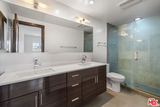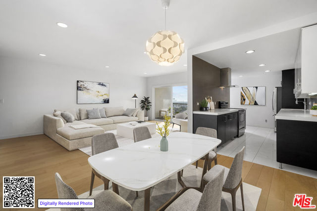 Enjoy spectacular views in the heart of West Hollywood from this stunningly remodeled penthouse with a spacious floor plan featuring two bedrooms and two bathrooms. This southwest corner unit on the top floor has sleek, modern finishes throughout including a washer/dryer inside the unit, gorgeous maple-colored hardwood floors, recessed lighting, dual pane windows, Caesarstone counters, walnut La Cava bathroom vanities, and Artemis ceiling fan. This home owner's dream has tons of closet space, a large south-facing sunny balcony, and a sensational kitchen with European cabinets and stainless appliances, including a top of the line LG washer/dryer. Enjoy energy efficient central heating and cooling with a Nest thermostat. Park your cars in the building's secure subterranean garage and you're just steps away from nearby restaurants (WeHo Bistro, Dialog Cafe) shopping (Trader Joes, CVS) and fitness clubs (Equinox, John Reed). Hurry, this one won't last!