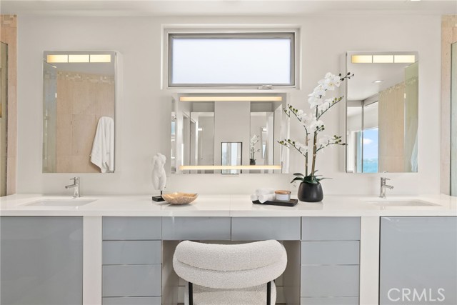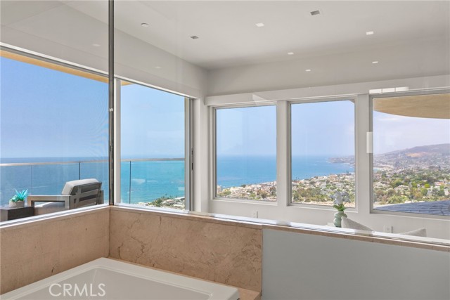 The ENTIRE UPPER FLOOR is dedicated to the OWNER’S RETREAT, a private sanctuary with SWEEPING OCEAN AND CATALINA ISLAND VIEWS. This LUXURY SUITE features a SPA-INSPIRED BATH with DUAL WALK-IN SHOWERS, a FREESTANDING TUB WITH FIREPLACE, PRIVATE SITTING AREA, and a VIEW BALCONY perfect for SUNSET UNWINDING.