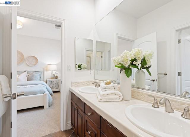 Welcome to 301 Friesian Court in the highly sought-after Alamo Creek community of Danville! Situated on a premium corner lot at the end of a quiet court, this beautifully refreshed home shines with fresh interior and exterior paint, brand-new carpet, and upgraded lighting throughout. The versatile floor plan features 1 bedroom and 1.5 baths on the main level—ideal for guests or multigenerational living—plus a spacious second level loft perfect for a media room, or flex space. Enjoy entertaining in the formal dining room and the chef’s kitchen complete with abundant cabinetry, stone countertops, built-in refrigerator and a large island with lower extension for seating. The generous second level primary suite offers a walk-in closet and a luxurious bath with jetted tub and separate tile stall shower. Step outside to a private backyard with paver patio—perfect for relaxing or hosting. Located in Alamo Creek near top-rated schools, parks, and trails and an HOA clubhouse and pool—this is one you won’t want to miss!