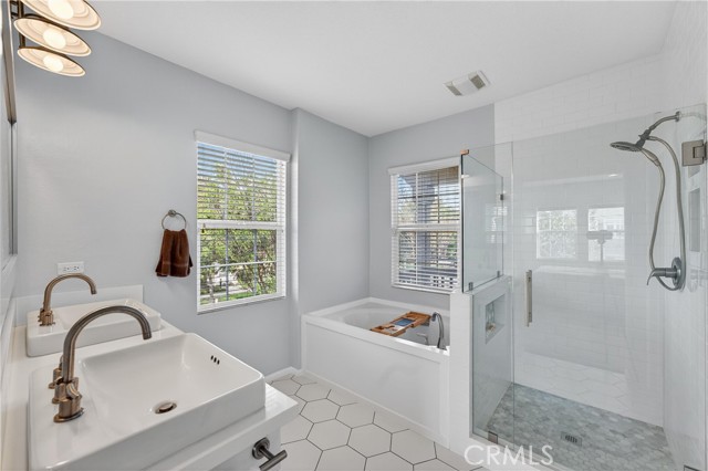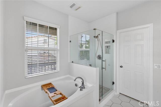 The expansive primary suite is light and bright and complete with a beautifully remodeled bathroom featuring a separate soaking tub and shower, plus a generous walk-in closet with built-in storage. The open-concept kitchen showcases granite countertops and flows seamlessly into a large dining area — perfect for entertaining. Abundant natural light throughout enhances the airy feel of the home.
