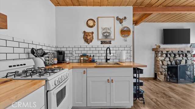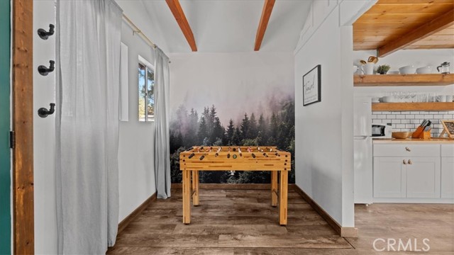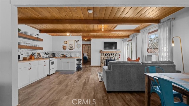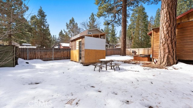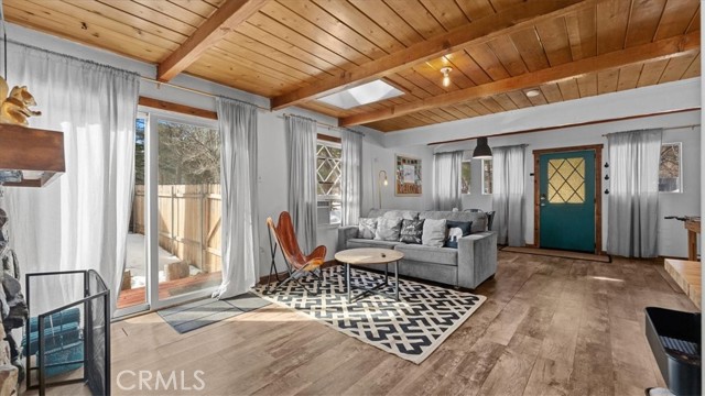 Turn the key and start earning or start relaxing. The perfect blend of mountain charm, modern comfort, and turnkey investment opportunity. Currently operating as a successful short-term rental, this fully furnished cabin is ready for its next chapter, whether that’s your personal vacation escape, primary mountain home, or income-producing property. Step inside and feel instantly at home with warm wood-beamed ceilings, abundant natural light, and a welcoming open-concept living space centered around a beautiful stone fireplace. The thoughtfully designed interior features updated flooring, a bright kitchen with open shelving and subway tile backsplash, and comfortable gathering areas perfect for relaxing after a day on the lake or slopes. This property is being offered fully furnished, including all appliances, beds with built-in storage, dining table, couches, rugs, décor, foosball table, and more, making it truly move-in or rental ready from day one. Outside, enjoy the spacious backyard complete with a newer covered gazebo ideal for outdoor dining and entertaining, a private spa for year-round enjoyment, mature trees, and a storage closet connected to the home for added convenience. Ideally located close to Big Bear High School and nearby parks, just 10 minutes to the lake and only 15 minutes to The Village, this home offers easy access to everything Big Bear has to offer while still providing a peaceful neighborhood setting. Whether you're looking to create lifelong mountain memories or continue generating rental income, this charming cabin delivers comfort, character, and opportunity all in one.