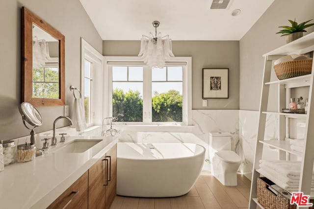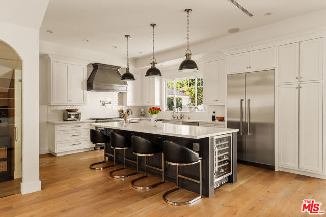 Welcome to 4943 Stern Ave, a home built for making memories, ready to enjoy the warmth and lifestyle of prime Sherman Oaks. Newly built on a quiet, tree-lined street, this 4 bedroom, 5 bathroom home offers space, comfort, and timeless design. Soaring 10 foot ceilings and beautiful natural light create a bright, cheerful feeling throughout the first floor, the open layout allows you to cook, help with homework at the oversized kitchen island, and still keep an eye on the kids playing nearby. The chef's kitchen truly anchors the home with a 6 burner stove, walk-in pantry, custom built-ins, wine fridge, and a cozy office nook for school projects or remote work, while the dining area sits perfectly between the kitchen and family room for effortless weeknight dinners and lively birthday celebrations. Upstairs, three spacious bedrooms each have their own en suite bathroom, making busy mornings easier, while a main floor bedroom is ideal for guests, grandparents, or even a playroom. The primary suite offers parents a peaceful retreat with vaulted ceilings, dual closets, and a spa-like bathroom to unwind at the end of the day. Outside, the completely private backyard is surrounded by lush landscaping yet filled with sunshine, creating the perfect setting for pool days, backyard barbecues, and kids running around on warm afternoons. With a finished detached garage featuring recessed lighting, AC and heat, plus generous parking for multiple vehicles, an RV, or a boat, this home is designed to grow alongside your family and all the adventures ahead.