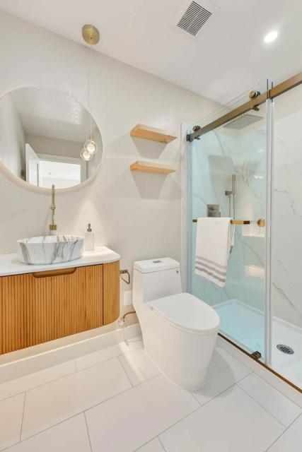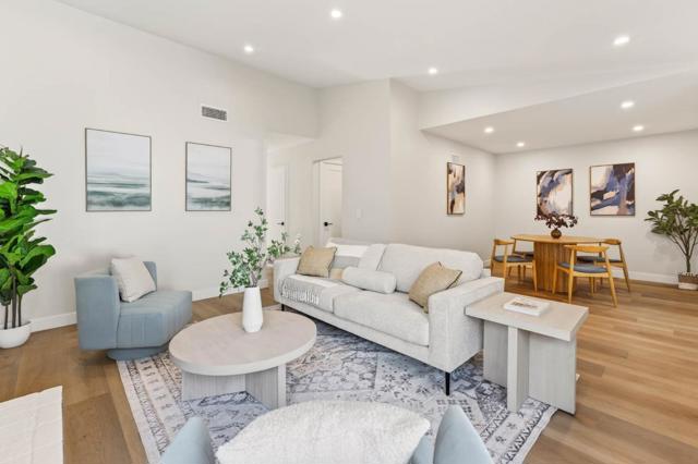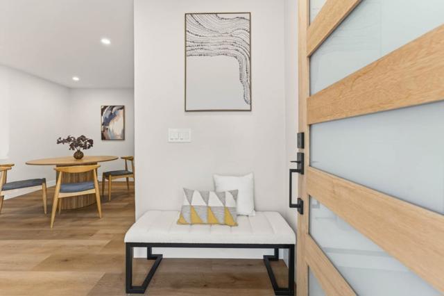 Experience modern elegance at 2056 Nottoway Ave, a stunningly renovated 1,167 sq ft single-family home in San Jose. Built in 1978, this 3-bed, 2-bath residence features a bright, open-concept interior with wide-plank flooring and recessed lighting throughout. The gourmet kitchen is a showstopper, boasting sleek white and wood-toned cabinetry, designer gold hardware, and a dramatic quartz slab backsplash. The living area, anchored by a white brick fireplace, flows into a dining space illuminated by a contemporary halo chandelier. Retreat to the primary suite, which offers direct sliding door access to a private backyard featuring lush turf, decorative stone borders, and a patio perfect for entertaining. Both bathrooms are masterfully updated: one featuring a vessel sink with gold fixtures and a walk-in shower with marble-style tiling, and the other offering a sleek black vanity and a soaking tub with integrated sliding glass doors. Additional highlights include a versatile home office and a two-car garage with modern exterior lighting. This home perfectly balances contemporary luxury with Silicon Valley convenience and is located within easy reach of local shopping and major commute routes. Welcome home!