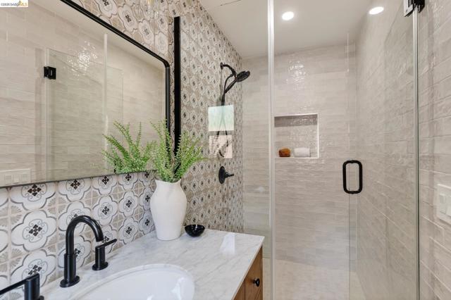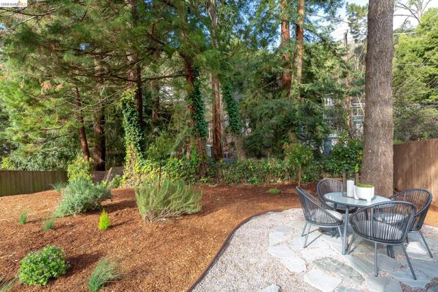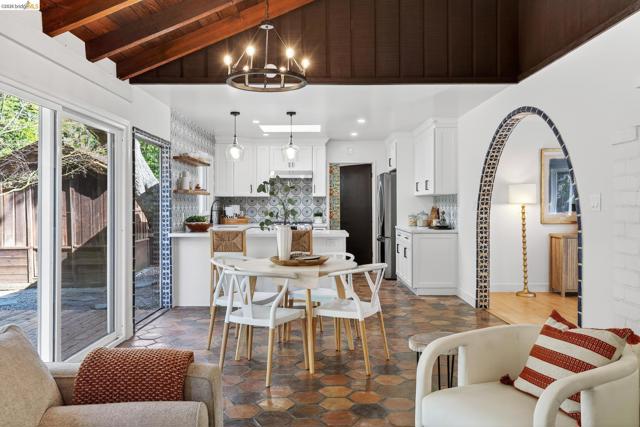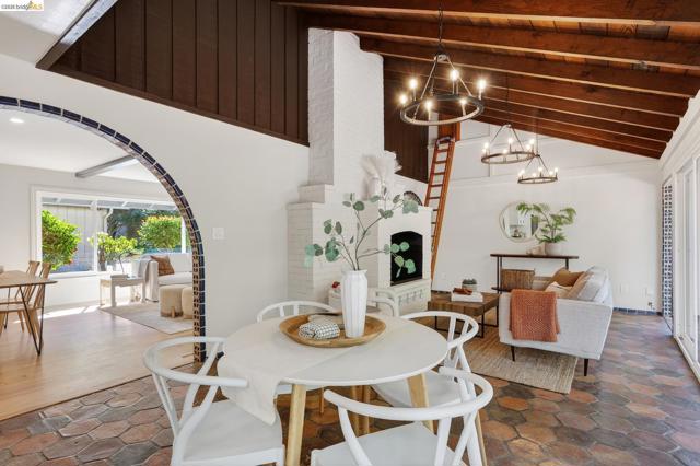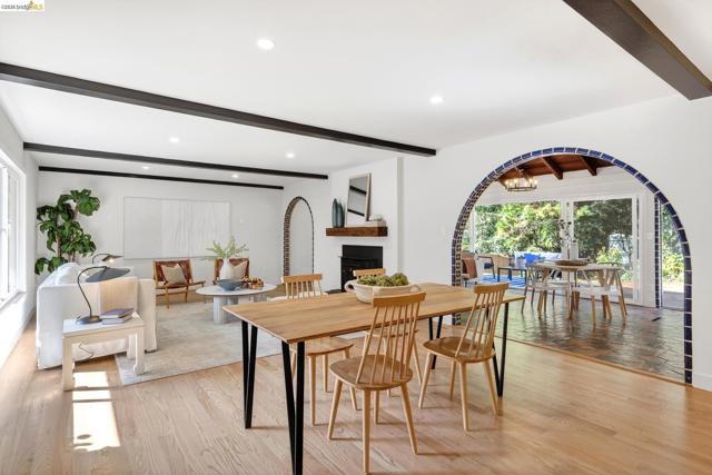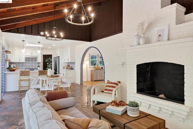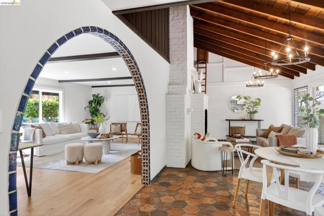 This exceptional Mid Century Montclair home sits on a rare pancake flat yard of 10,380 s/f. It is tucked away in a quiet cul-d-sac off Alhambra Lane, yet it is a few houses away form Thornhill Elementary and only minutes from Montclair Village. Architectural character and vaulted wood beam ceilings soar above expansive living spaces, creating an open, airy feeling. The home’s design carries a unique modern Spanish/Mission flair—artisan tile work and custom details are woven throughout. A very large living room flows seamlessly into the family room and the beautifully remodeled kitchen with eat-in counter. The very generously sized family room boasts wall to wall window and sliding doors and levels out to the large deck and fabulous level park like garden. 2 car garage plus one extra parking pad next to the garage.