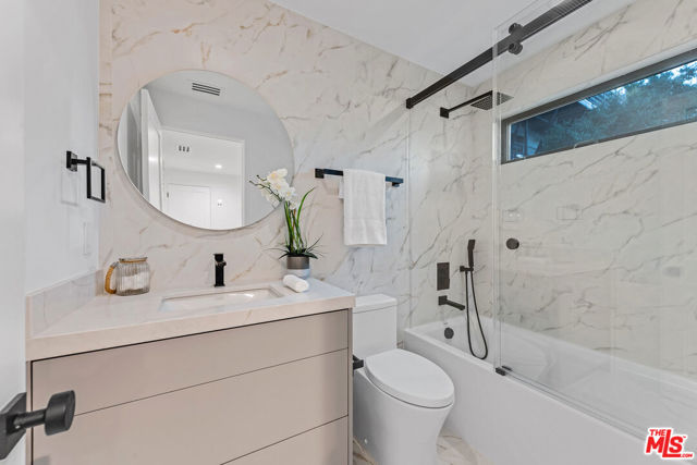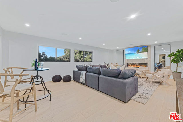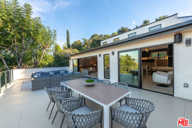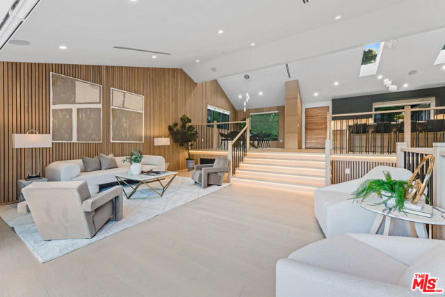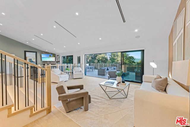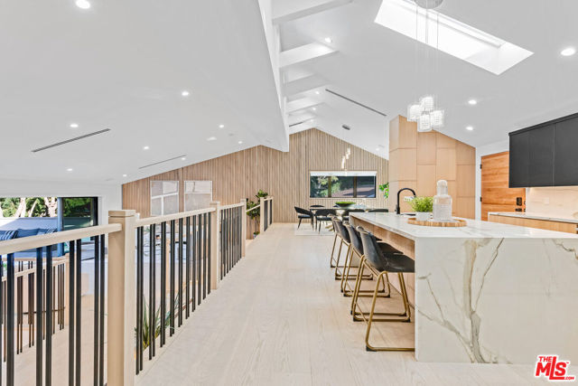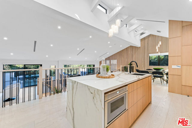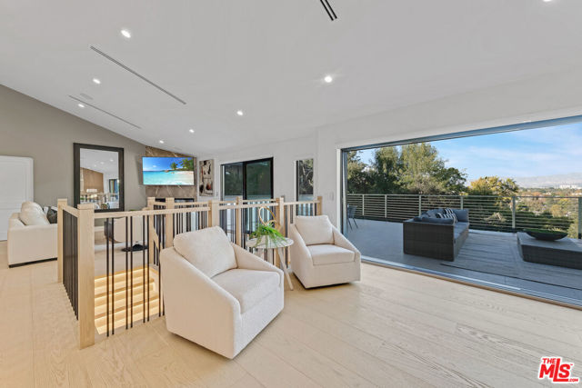 A refined architectural retreat in prime Studio City, south of Ventura Boulevard, this recently renovated contemporary residence commands attention with striking proportions and sweeping mountain and city views across approximately 4,185 square feet, including a fully integrated ADU. An open floor plan unfolds beneath dramatic vaulted ceilings, where wide-plank white oak floors and expansive walls of glass create seamless continuity between living, dining, and entertaining spaces. The oversized view deck extends the living experience outdoors, embracing the quintessential California indoor/outdoor lifestyle against a backdrop of panoramic vistas. The kitchen is both sculptural and functional, appointed with Thermador appliances, custom cabinetry, and a statement island designed for effortless gathering. The primary suite offers a sophisticated sanctuary with fireplace and private terrace access. Additional en-suite bedrooms provide refined comfort, while a versatile bonus space with separate entrance potential lends itself to a screening lounge, executive office, or the capability for a dual-primary configuration. The attached ADU reflects the same design integrity as the main residence, complete with a full kitchen ideal for guests, extended stays, or income potential. Lutron lighting, integrated surround sound, solar panels, enhanced security, generous storage, and a finished epoxy garage complete the offering. A residence that balances architectural presence with livable luxury, set within one of Studio City's most coveted enclaves.