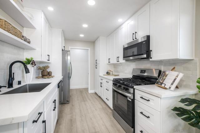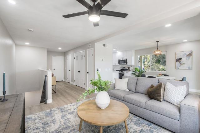 Quail Ridge Community is highly sought after for being just minutes from Oceanside Harbor, the beach and Camp Pendleton. This two bedroom reverse layout offers your living space on the entry level, along with a patio right off the dining area, downstairs, the layout boasts two bedrooms and two full baths. The master bedroom has a slider leading to your private outdoor space. The galley style kitchen has been updated with new cabinetry counter tops and appliances. Laundry room is located just off the kitchen. Windows have been updated also!