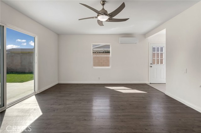 Inside, the home is filled with natural light and offers a functional layout designed for comfortable everyday living. The living room is generously sized and features sliding doors that open to the expansive wraparound backyard. The backyard provides ample grass and usable space, ideal for entertaining, pets, or future enhancements.