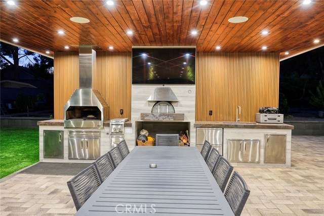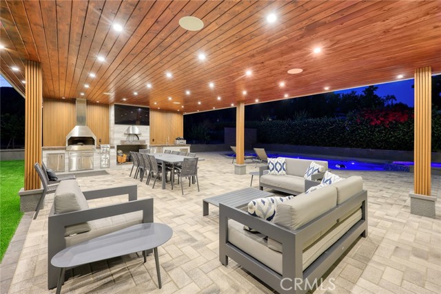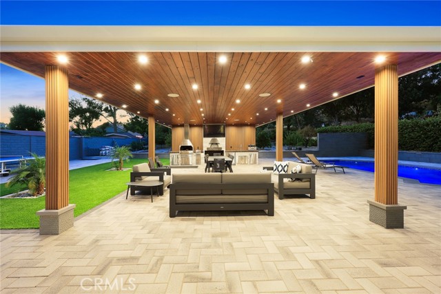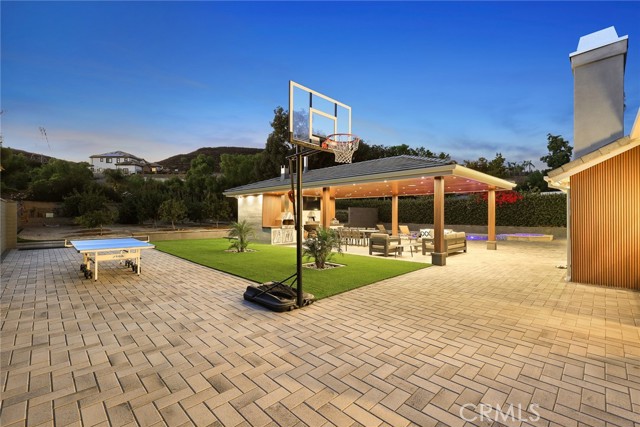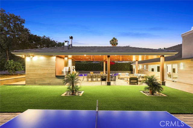 The outdoor space is a true entertainer’s dream. A high-ceiling custom gazebo anchors the backyard with a built-in pizza oven and BBQ station, while the re-plastered saltwater pool with spa, new equipment, and LED lighting creates a private oasis. An outdoor full bathroom with private storage adds convenience for poolside living. Over 25 mature fruit trees with a sprinkler system, new pavers extending from front to back, and RV access with a new gate maximize both beauty and functionality.