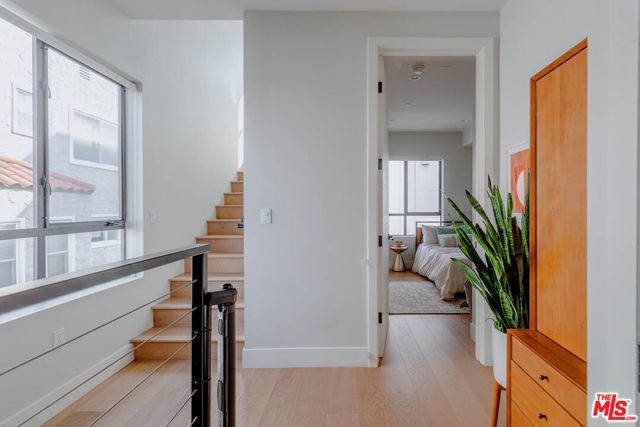 A rare gem adjacent to Hancock Park and Larchmont Village, this architectural masterpiece reimagines contemporary luxury, seamlessly blending authenticity, style, and impeccable craftsmanship. As one of only four single-family homes built in 2017 on a well appointed lot near Larchmont Village, this 3 bedroom + loft, 2.5-bath residence offers a sanctuary of thoughtful design and modern elegance. The home's reverse floor plan is a showstopper, placing the main living area above with soaring 17-foot ceilings that flood the space with natural light. A versatile loft overlooks this dramatic living area and leads to a private outdoor patio, creating the perfect balance of openness and intimacy. From the moment you step inside, you're greeted by sunlight streaming through expansive windows, highlighting the home's exquisite finishes. The chef's kitchen is a work of art, featuring sleek Porcelanosa tile, custom German-imported Leicht cabinetry, and top-of-the-line Bosch appliances an inspiring space for everything from preparing quiet weeknight dinners to entertaining guests. Dual balconies extend the living space outdoors, perfect for hosting casual get-togethers or lively soires. Move-in ready and no HOA fees, this home boasts a suite of premium upgrades. Highlights include an Aquasana Whole House Water Filtration System installed in 2024, a new hot water heater (2022), shatterproof security coating on first-floor doors and windows, and a comprehensive whole-house security system for peace of mind. The loft space flows effortlessly to a private outdoor patio with sweeping views of the Los Angeles skyline and the iconic Griffith Park Observatory a tranquil escape in the vibrant city. Situated less than a mile from Larchmont Village, you'll enjoy easy access to charming shops, trendy restaurants, and bustling farmers' markets, all while being nestled in a historic neighborhood known for its top-rated schools, making it a perfect fit for families and/or those looking for tranquil yet versatile space. With a 2-car attached garage offering direct entry and a history of only two meticulous owners (no renters), this home isn't just a place to live it's a piece of architectural artistry in one of Los Angeles' most coveted neighborhoods. Sophisticated yet welcoming, luxurious yet effortlessly livable, this one-of-a-kind opportunity can be yours!