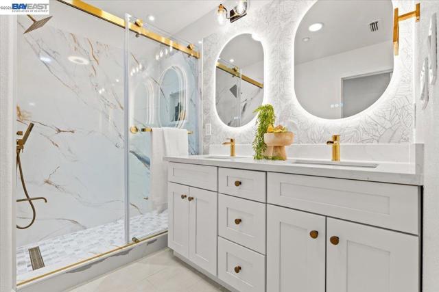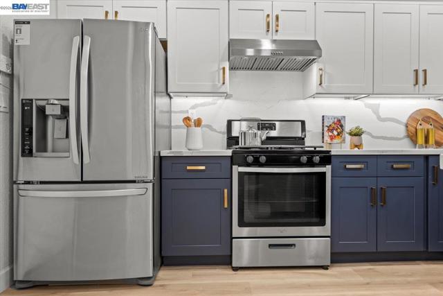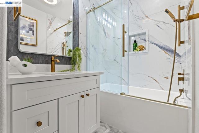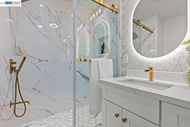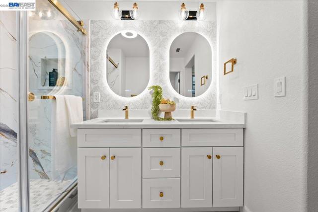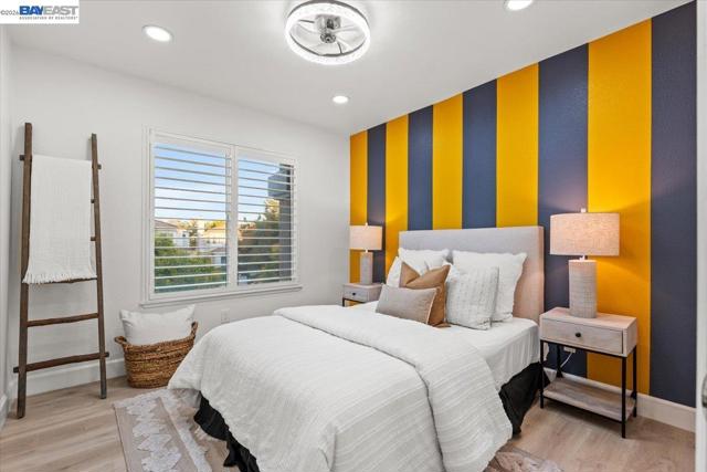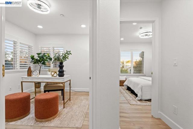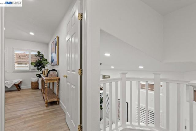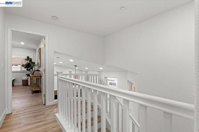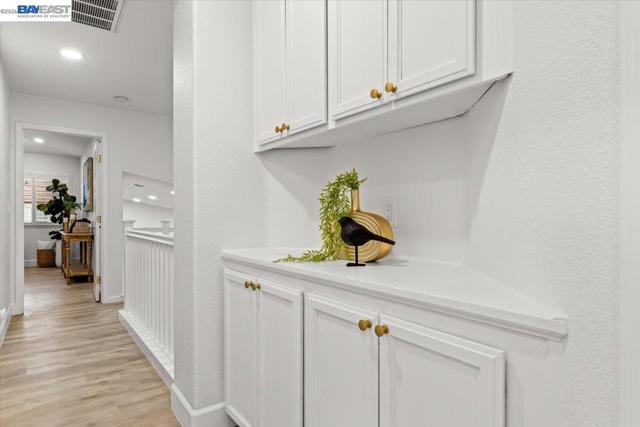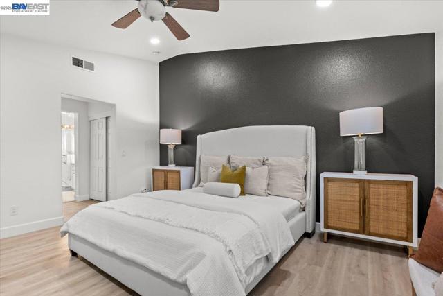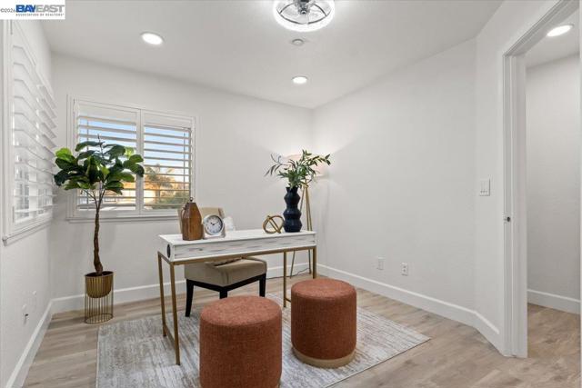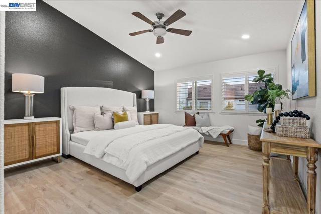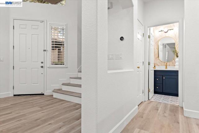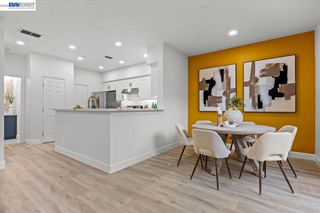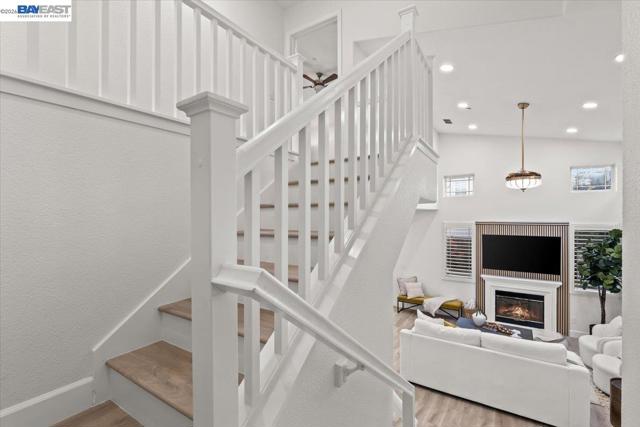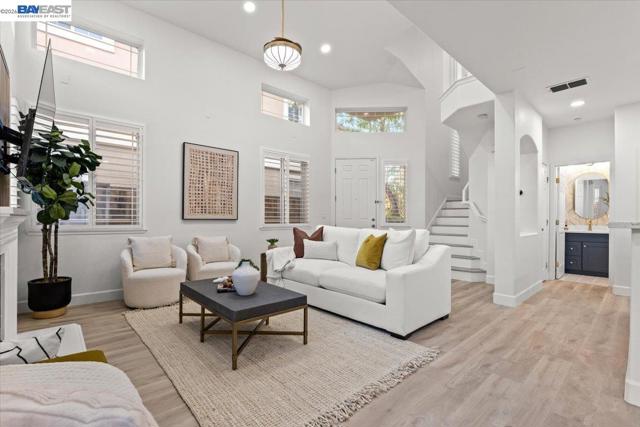 The NE-facing Duet home in the Creekside development in Livermore , loaded with $150K of premium upgrades, shows like a model! The spacious living and dining room combination boasts vaulted ceilings and abundant natural light, featuring top-of-the-line stainless steel appliances, a modern accent backsplash, and custom Shaker-style cabinets in the kitchen. Impressive upgrades include luxury vinyl flooring, fans, and recessed lights in all rooms. Downstairs, there is an updated half bath, a laundry facility, and the entryway. Upstairs, the spacious master bedroom has an updated bathroom with two separate vanity sinks, and there are two more bedrooms with an upgraded bathroom. The property includes a two-car garage with storage overhead racks, custom cabinets, heavy-duty garage flooring, a custom security door, a whole-house water softener system, paid solar, an EV charger, smart home features, and plantation shutters. Located in a safe and vibrant neighborhood with easy access to major freeways, downtown Livermore, parks and trails, Del Valle Lake, wineries, restaurants, and shopping, this home has no HOA. Don't miss this opportunity to make this beautiful home yours!