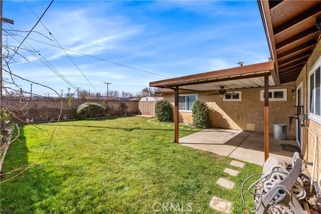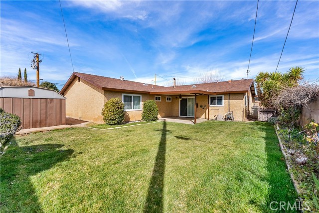 Great opportunity here! This ranch style single story is situated on a corner lot! Great curb appeal with fresh exterior paint, rose garden and mature shade trees. Functional floor plan with 3 bedrooms, 2 full baths, 1,778 square feet of living space with TWO large living areas! UPGRADED Lennox HVAC unit and UPGRADED windows throughout! The kitchen has tile flooring, a spacious dining area and a sliding glass door to the backyard. The wood burning stove is centrally located to heat the whole house! Peaceful backyard with a covered patio, block wall fencing, lush landscaping and a large storage shed. 2 car attached garage PLUS possible RV access from the side!