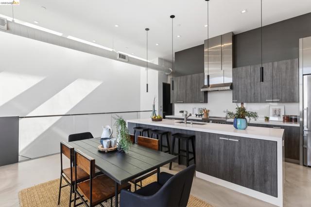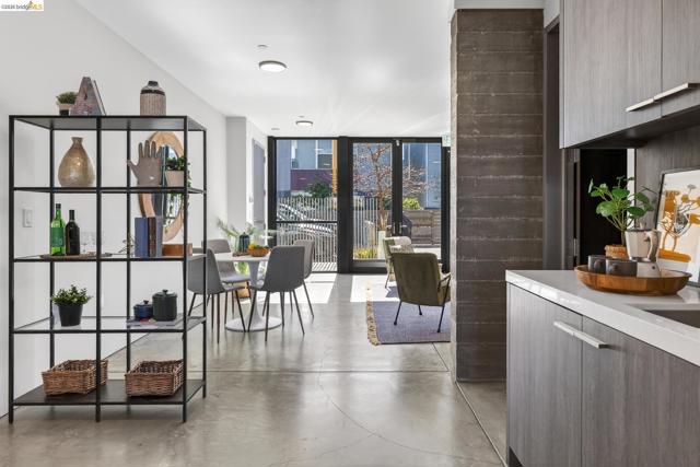 811 Folger Avenue, completed in 2020, offers an elegant interpretation of a hybrid “Live-Work” design by architect David Stark Wilson. This is an all-electric property! The property has three floors: two residential floors and one office/workspace floor. Both the residential and workspace/office floors have independent heating and AC systems, all powered by a rooftop solar array. The residential floors feature 3 bedrooms and 2 bathrooms, a private front deck, and an open-plan study. The top floor has a spectacular “great room”, a dynamic kitchen/dining area/living room combination featuring a huge island, a suite of SS energy-efficient appliances, and beautiful custom windows with urban views. The office/workspace floor has a level-in independent entry, an ADA bathroom, and the counter space is plumbed for a microwave and refrigerator. The tall French doors capture the southern light, illuminating this space with bright natural light. This office space may be rented separately. The heart of the property is an unexpected stainless-steel staircase, an unexpected companion to the polished concrete floors and board-formed concrete walls. The property has two designated parking spaces (one space has an electric car charger) and is near Berkeley Bowl, shops, cafes, and mass transit.