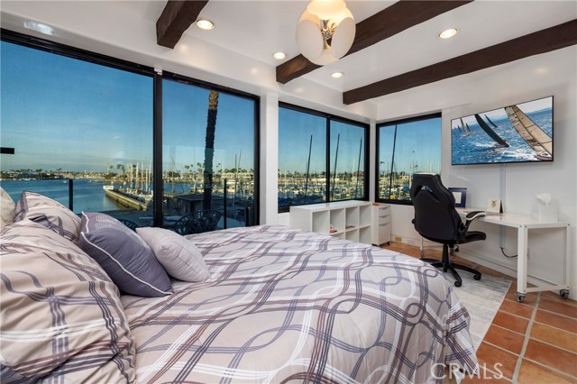 Inside, the open-concept kitchen and living space frame sweeping bay views, while the top-floor primary suite with a sitting area, picture windows, and walk-in closet feels like a private tower retreat overlooking the water. Two additional bedrooms, three and a half baths, and a flowing layout makes the home as livable as it is impressive.
