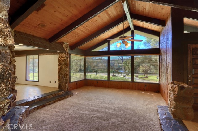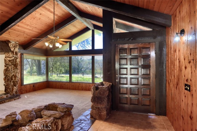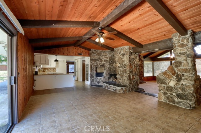 This custom built 4 bedroom, 2 bath home in desirable Indian Lakes offers a rare opportunity to enjoy comfort, craftsmanship, and lake living all in one exceptional property. Ideally located directly across the street from the lake, the home welcomes you with stunning tongue-and-groove beamed ceilings and a dramatic wall of windows that fills the living space with natural light while showcasing the surrounding scenery. The living room features a cozy fireplace, while the kitchen offers its onw fireplace and a unique indoor grill, creating the perfect setting for entertaining year round.