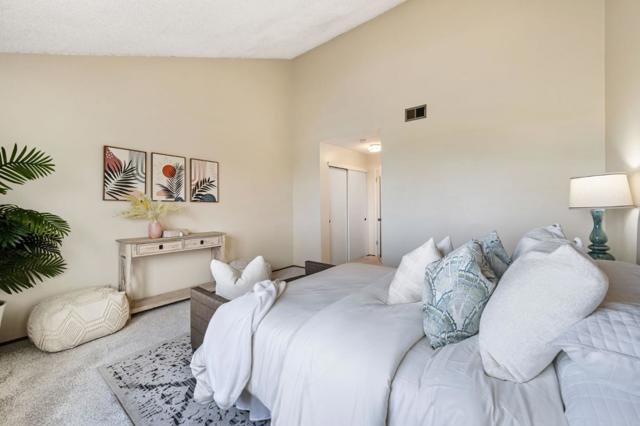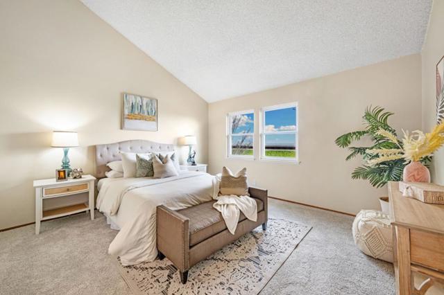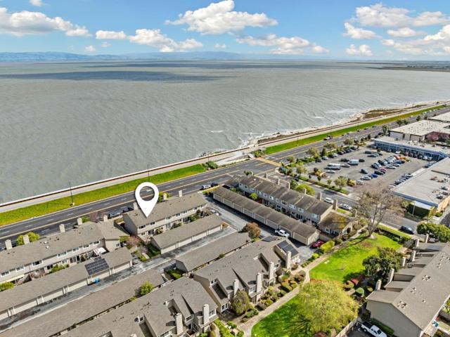 Across from the shoreline, this inviting two-story townhouse captures the essence of coastal living with walkable access to the Bay Trail, downtown shops and dining, and the beach just moments away. The main level offers a bright, welcoming living room centered around an electric fireplace, a versatile double-door office enclosure ideal for working from home, an adjacent half bath, and a seamless flow that connects the living and dining spaces. The updated kitchen features modern finishes, ample cabinetry, and sliding glass doors that open to a private outdoor patio, perfect for relaxing or entertaining, with convenient access to the laundry area. Upstairs, a spacious bathroom highlights a glass-enclosed shower with designer tile detailing. The primary bedroom enjoys serene Bay views, while additional bedrooms are filled with natural light and flexible living options. A detached two-car garage provides valuable storage and parking. Last but not least, don't miss the community pool and clubhouse!