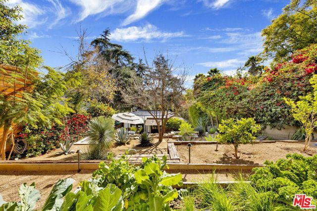 Escape to your own private sanctuary at 2021 Rome Street, a hidden gem in the heart of Glassell Park offering an unparalleled sense of privacy and a lifestyle defined by indoor-outdoor harmony. This meticulously maintained 2-bedroom, 2-bathroom residence is perfectly situated and walkable giving you the best of secluded living and urban convenience. Bathed in natural light that highlights gorgeous patina'd terracotta living room tile, the home features modern smart upgrades including lights on a wifi switch for effortless ambiance. The kitchen is a designer's dream with sleek concrete countertops and rustic shelving, while the stunning concrete bathroom with an overhead skylight and classic claw foot tub offers a spa-like retreat. The primary suite serves as a true cabin retreat designed for excellent airflow and peaceful ambient sounds, complemented by a remarkably versatile layout with a nursery or office space perfectly sized to accommodate a queen-sized bed. Experience a serene "treehouse" feeling on the front patio nestled within a large pine tree, the ideal spot for morning coffee or sunset wine. The crown jewel of this property is the expansive, tiered backyard featuring a fully functional fountain and a gardener's delight of mature, producing fruit trees including Lime, Blood Orange, Lemon, and Orange. Confidence comes standard with this move-in ready listing as the sellers have proactively handled major maintenance, including a brand-new front retaining wall, newly redone front steps, a brand-new back fence, a new rear wall, and professional remediation of past root intrusion with excellent drainage. This impeccably cared-for interior and its versatile outdoor spaces are ready for their next chapter.