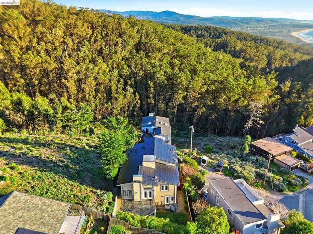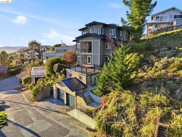 Ideally located in the sought-after El Granada Highlands, this expansive 4BD/3.5BA + office + bonus room retreat captures sweeping panoramic ocean, harbor, & mountain vistas from multiple levels. Thoughtfully designed using Feng Shui principles to enhance natural light & flow, the home offers approx. 3,552 sq ft w/ a rare blend of scale, privacy, & flexibility along the Coastside. Vaulted ceilings, skylights, & expansive decks create light-filled living spaces ideal for everyday comfort & sunset entertaining. The chef’s kitchen features Thermador appliances, granite counters, walk-in pantry, butcher block island, & panoramic windows framing scenic outlooks. The upper-level primary suite serves as a private retreat w/ ocean views, custom closet, dedicated office or meditation space, & spa-style bath w/ Japanese soaking tub & separate shower. A lower level w/ private entrance, living area, bedroom, full bath, & kitchenette provides separation for guests or multigenerational living. Elevator access connects main living levels, complemented by radiant floor heating, owned solar roof (2020, NEM 2) & dual Powerwalls, & smart security. Minutes to Quarry Park trails, Surfer’s Beach, Pillar Point Harbor, & downtown Half Moon Bay. A rare opportunity to enjoy elevated coastal living.