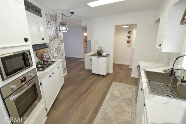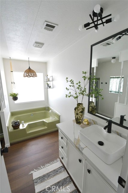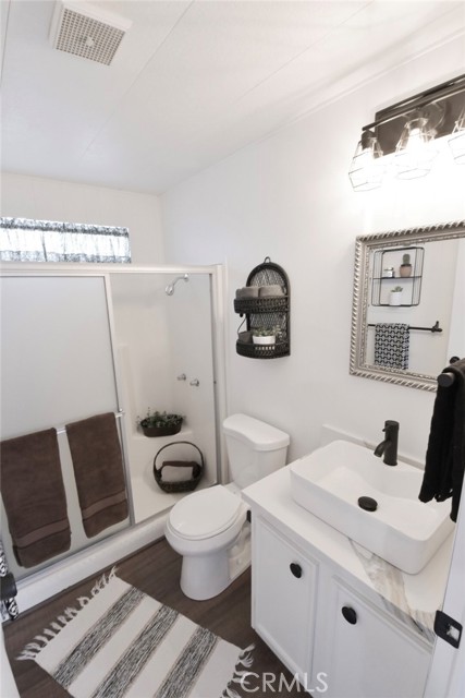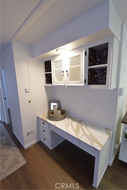Adorable renovated home in 55+ Bautista Estates in East Hemet! 2 bedrooms and 2 bathrooms. Tons of brand new stuff here including the roof, paint inside and out, laminate flooring throughout the entire home, quartz counter tops in the kitchen, bathrooms and desk area, sinks and faucets, and window shades. Light and bright open floor plan. Quiet and peaceful cul-de-sac location. RV parking and large lot. Seller financing available for qualified buyers! There are no park fees here, you own the land and HOA is only $50 a year! This home is cute as a button and move-in ready!